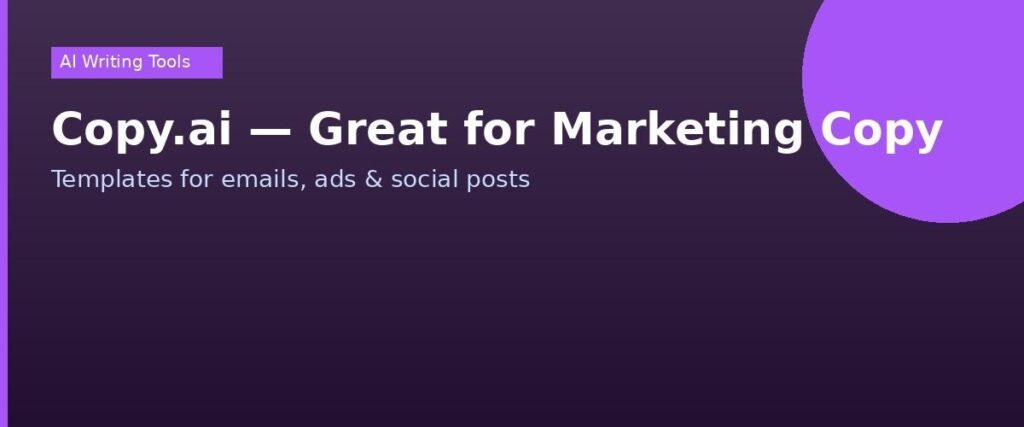 Copy.ai started as a pure copywriting tool, and it still does that better than most. If you need punchy ad copy, email subject lines, Instagram captions, or product descriptions, Copy.ai is one of the first places I’d point a beginner.